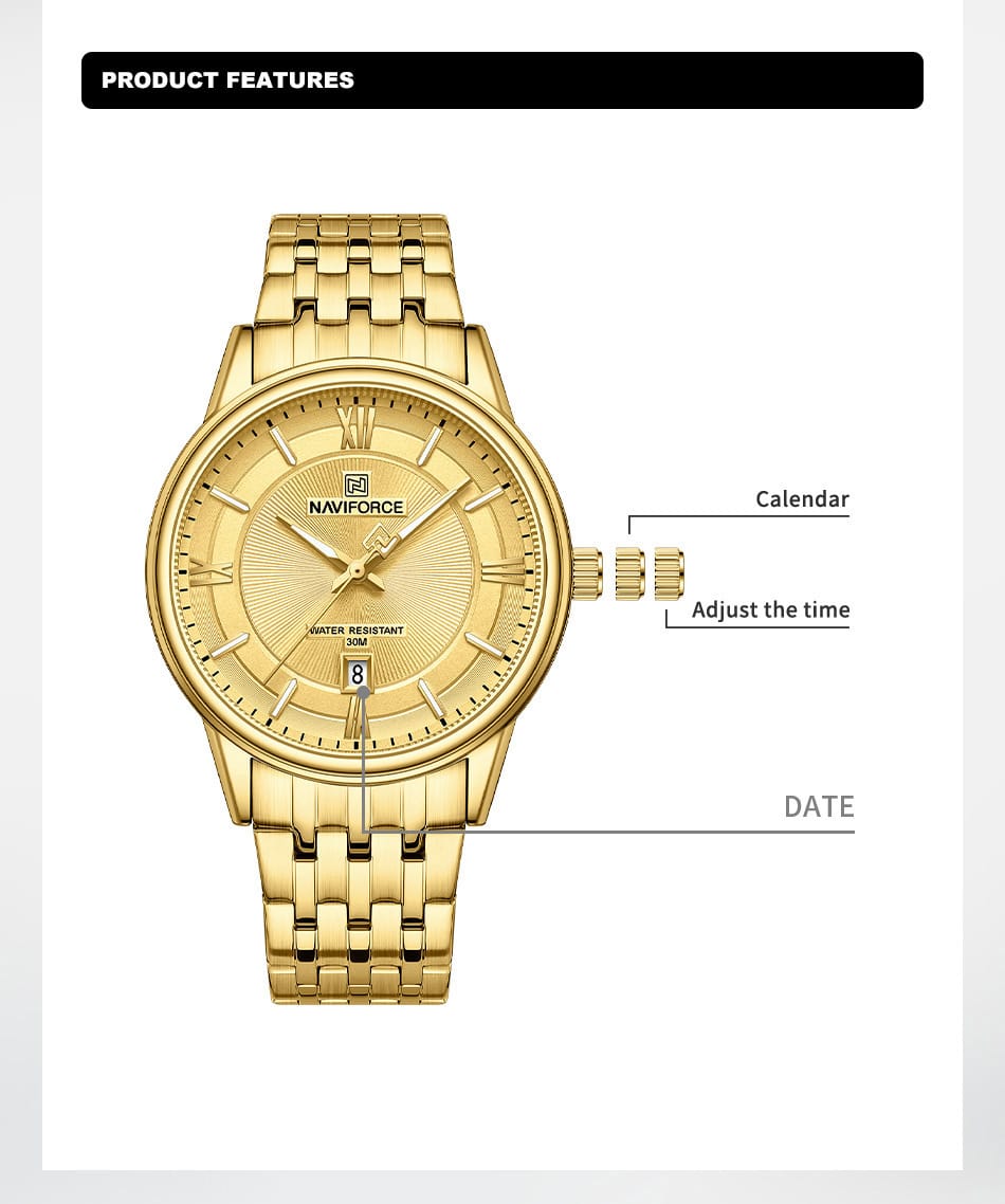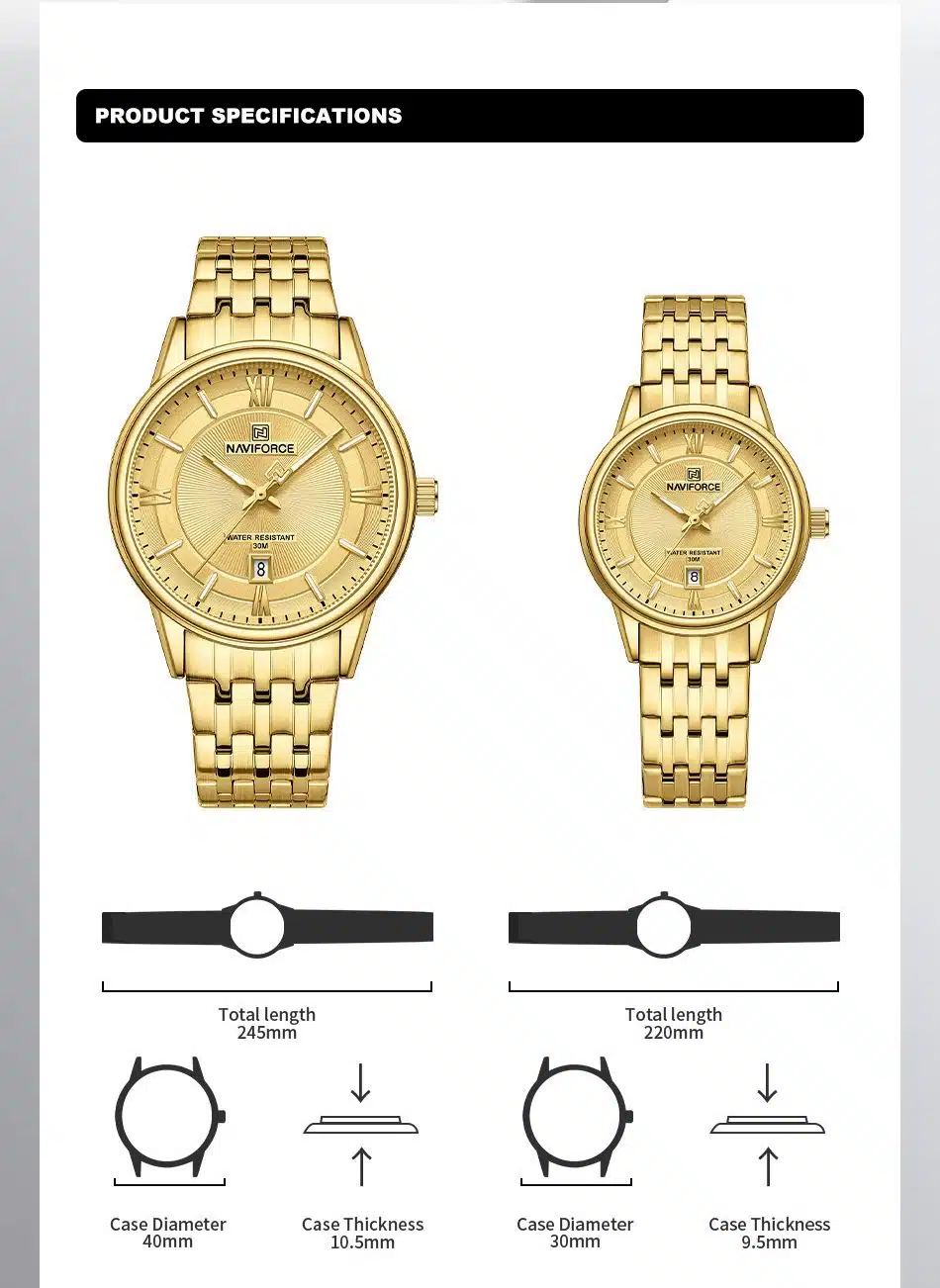 Naviforce 8040 Couples Set – Gold