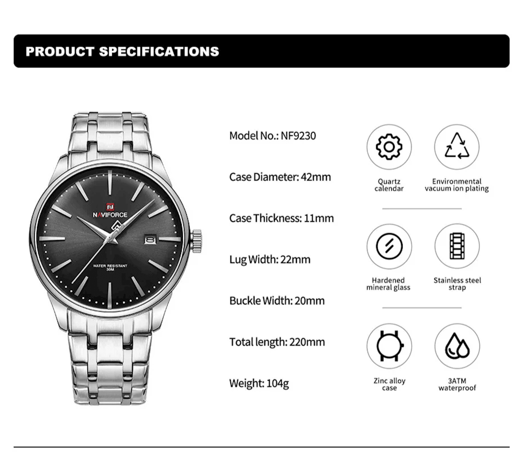 Naviforce 9230 Mens Watch – Silver/Black